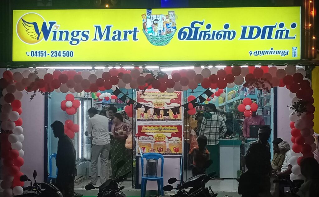 கடந்த 01-01-2026’ல் மூரார்பாதுவில் WINGS MART பல்பொருள் அங்காடி திறப்புவிழா கண்டது. விங்ஸ் மார்ட் என்கிற பல் பொருள் அங்காடியின் மூல நோக்கமே அடக்கவிலையிலிருந்து தள்ளுபடி விலையில் பொருட்கள் என்பதாக இருந்தது.
